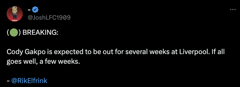 - Crystal Palace attacker Eze is out with a “serious injury”, and ” will have to wait on a second scan”