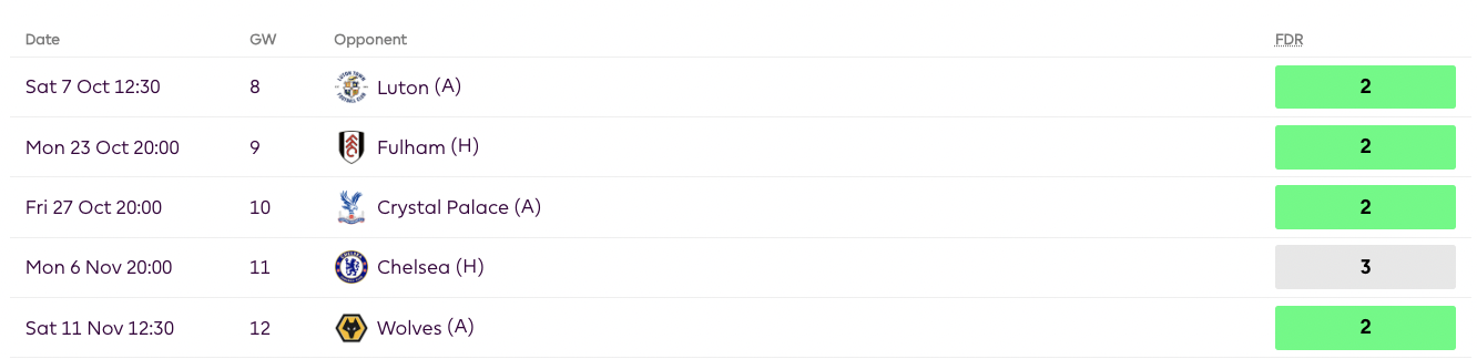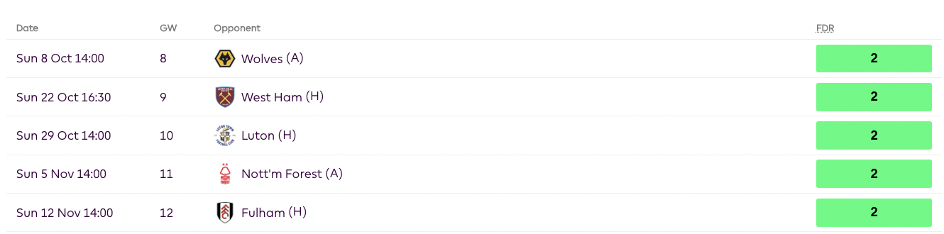 - Aston Villa also have great fixtures which improves their clean-sheet potential in the coming games