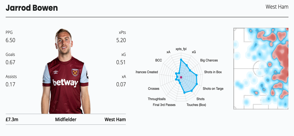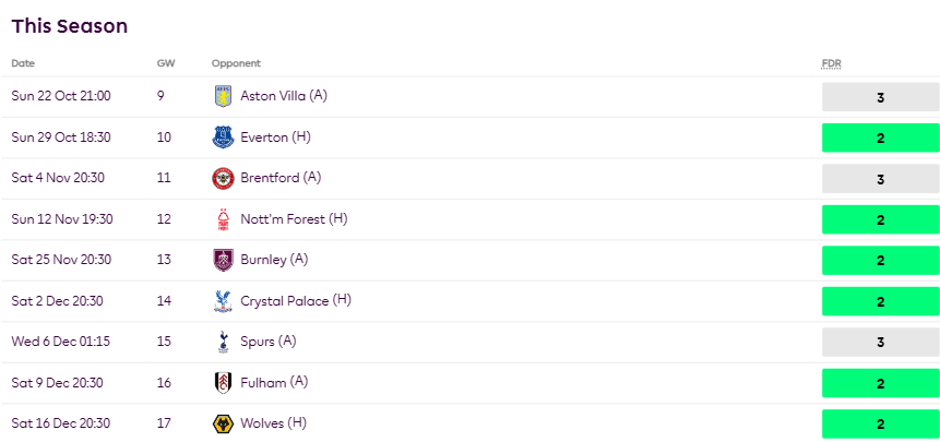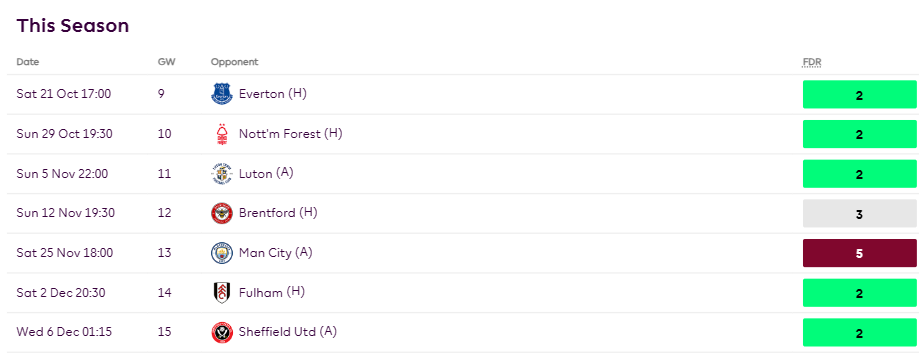 Bowen/West Ham’s great fixture run from GW9-GW17: