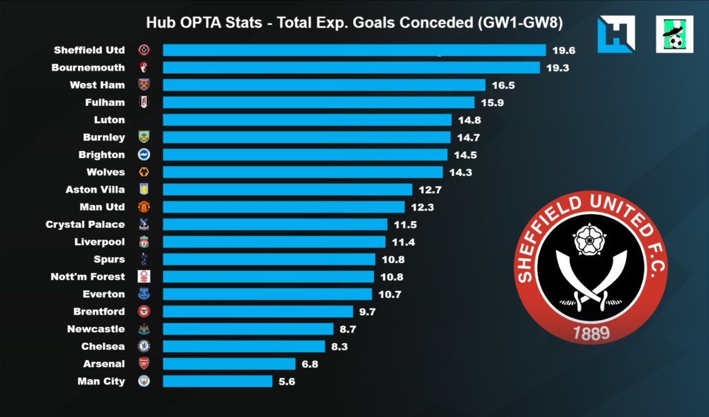 Meanwhile, Spurs’ FPL GW9 opponents Fulham have the fourth worst record for xGC (15.92) thus far in FPL.