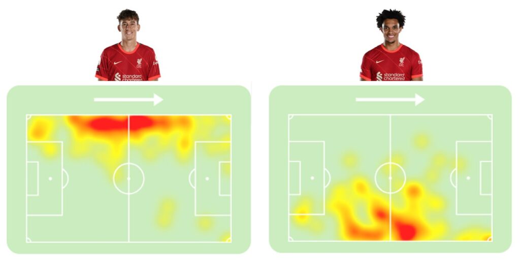 The Greek defender is very much capable in playing the offensive game. If you look at his heat map vs Nottingham Forest, he took up positions up the field which were very similar to Trent Alexander Arnold on the opposite flank. Tsimikas also took more corners than his more famous teammate.