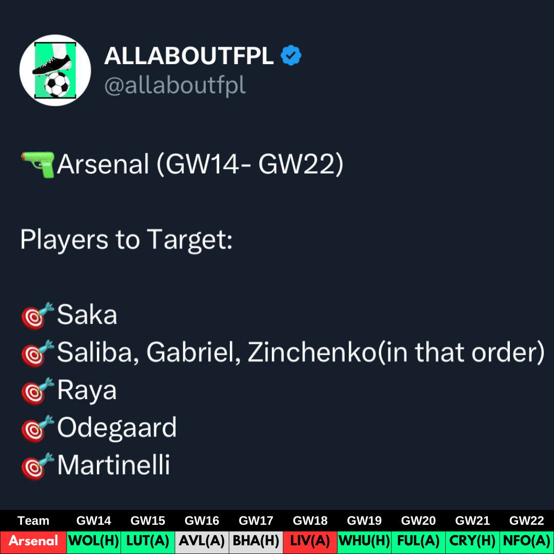 Detailed analysis on Teams and Players to Target for Gameweek 14 based on fixture analysis: