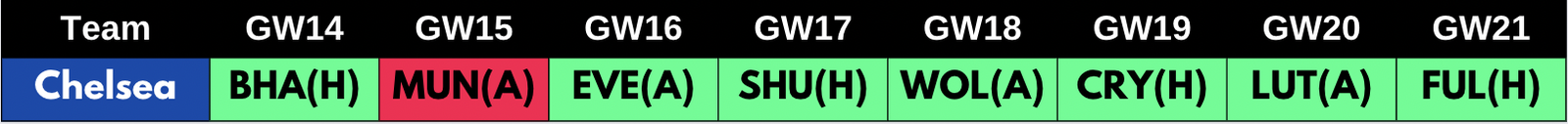 - Chelsea- Palmer, Sterling, James(from GW15/GW16), Silva, Sanchez