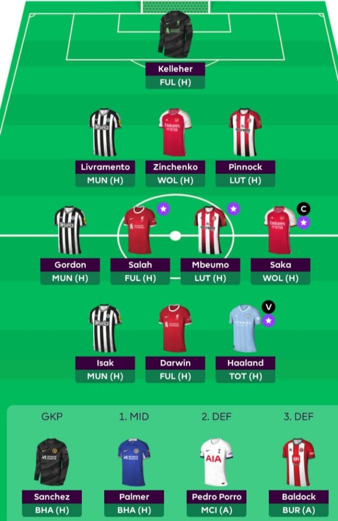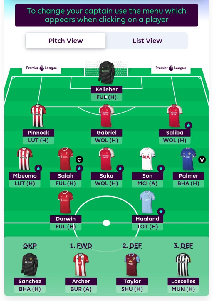 - Solid midfield of Salah, Saka, Son, Palmer, and Mbeumo – All consistent performers and likely on penalties
