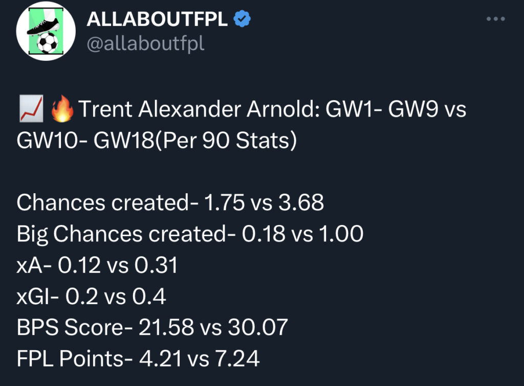 Trent Alexander-Arnold is the new talisman of Liverpool and has consistently been the highest scorer FPL points in the: