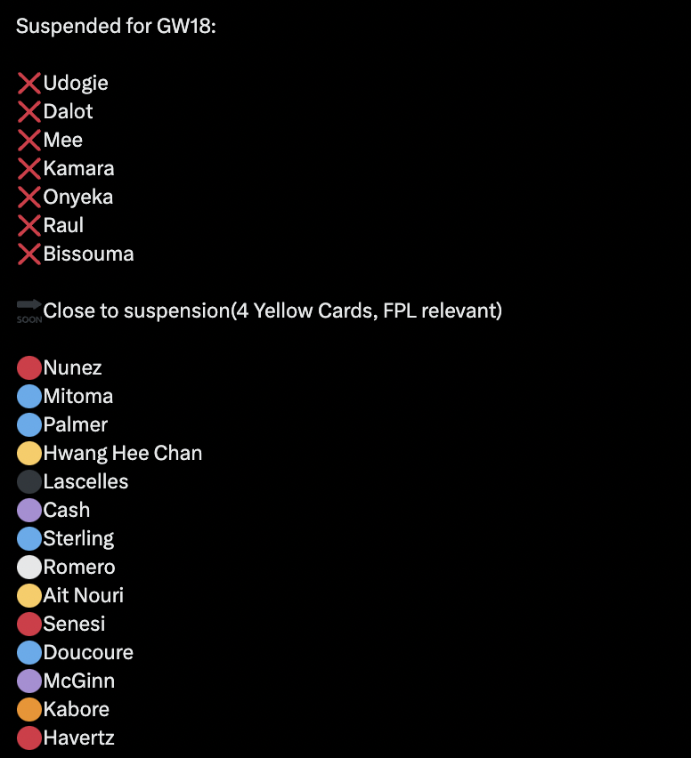 Suspension Watchlist ahead of FPL Gameweek 18:
