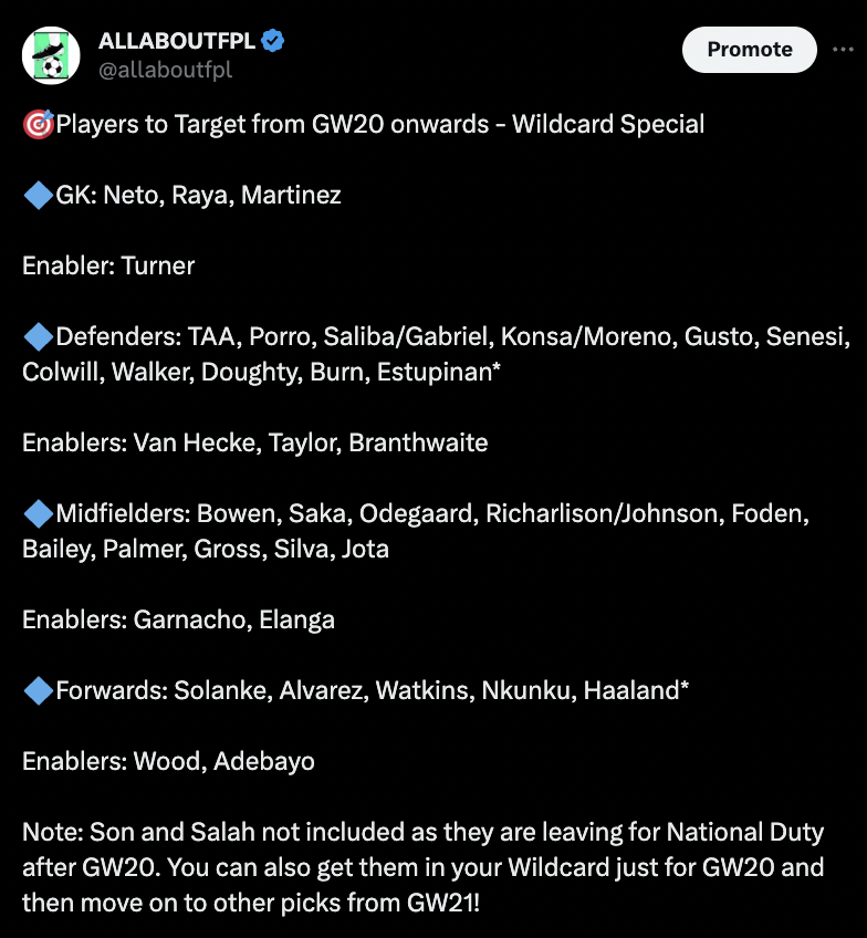 Players to Target from GW20 onwards – Wildcard Special