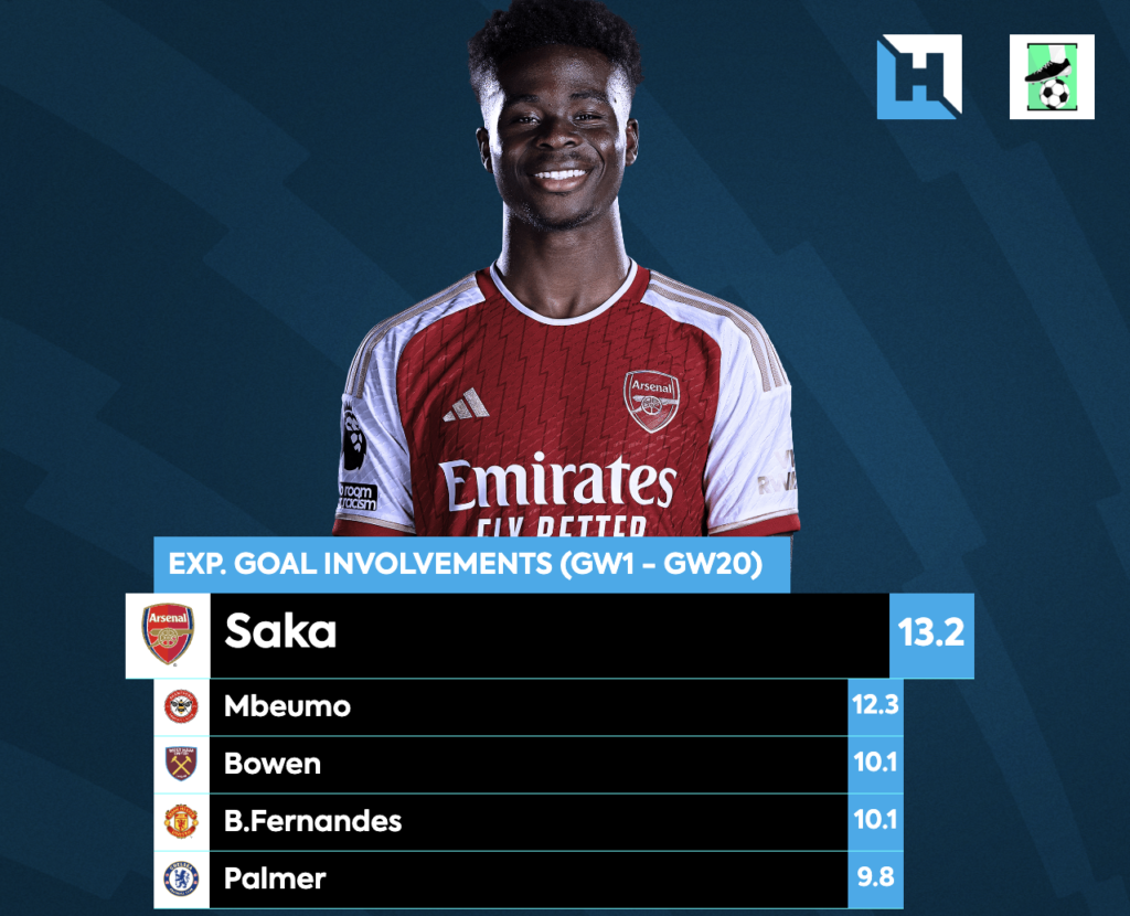 Despite Arsenal being in poor form recently, their attackers remain great options for managers who are looking for a straight swap for Son and/or Salah. Saka is still the best Arsenal option, producing 0.76xGI/90, the highest of any player in the squad to have played 800 minutes or more in the league this season. The young Englishman has also played the 3rd most minutes, behind only Saliba and Rice, and is renowned for his availability, so his minutes are never a worry.