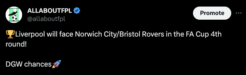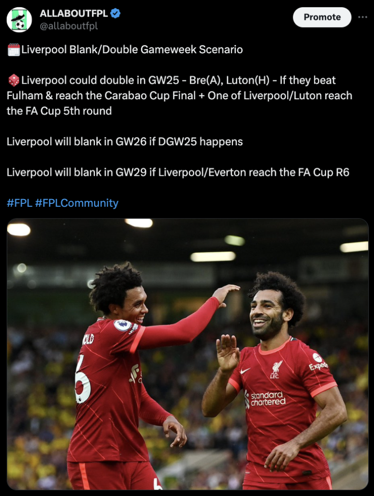 Do note: Liverpool currently only need to get past Fulham to progress to the Carabao Cup final, there’s a high chance that Klopp’s team could blank in GW26 (Carabao Cup final). However, there is a high chance that Liverpool will double in GW25!