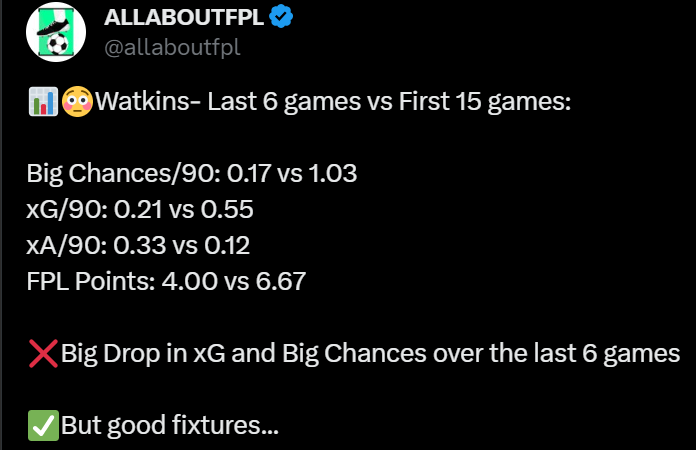 - Watkins is a more reliable and safer pick if you want a player for the longer run.