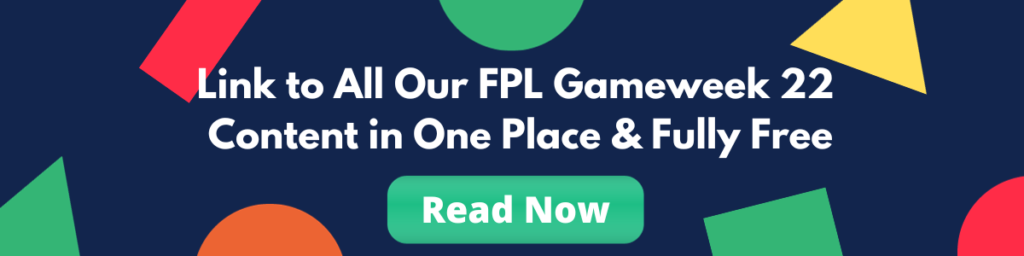 Link to all our FPL GW22 blogs including buy, hold, sell analysis, differentials, captaincy metrics, transfer targets, and more. Completely free to access as well!