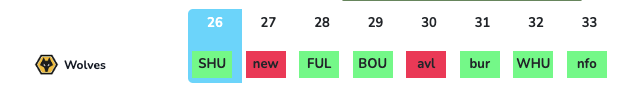 Wolves play SHU in GW26. SHU ranks bottom for every defesive metric