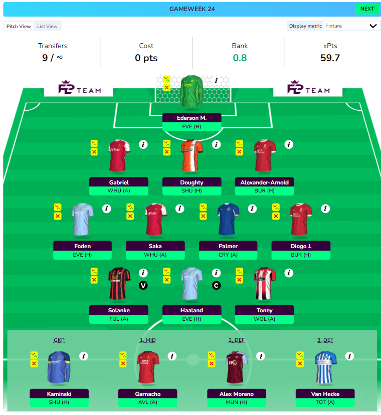 - TAA, Palmer, Saka, Gross, Jota, and Foden- All pick themselves with current form, great fixtures, and upcoming Double Gameweeks.