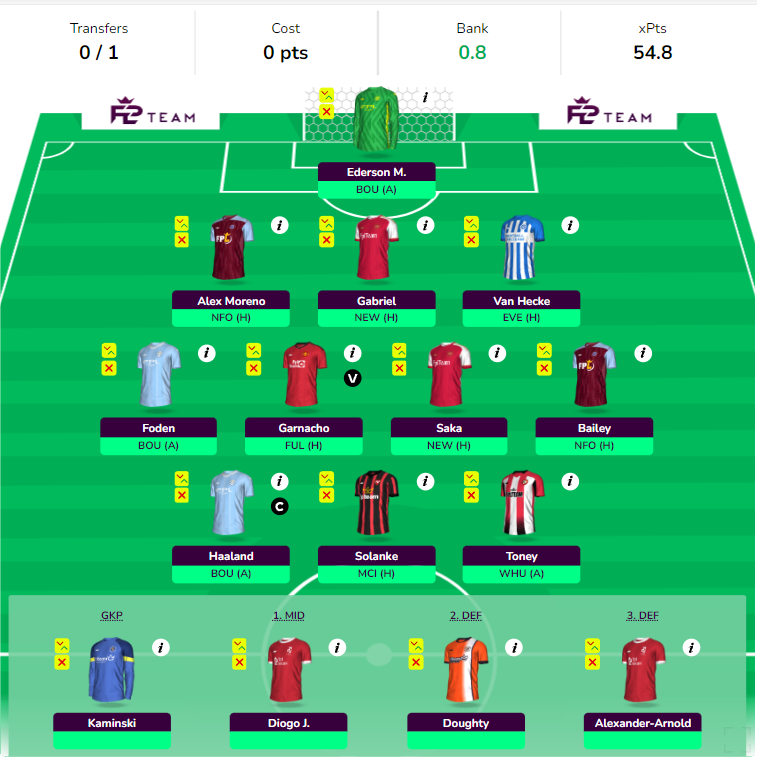 - Bench Boost active with 8 Double Gameweek players-> Haaland(c), Foden, Ederson, Jota, TAA, Doughty, Kaminski