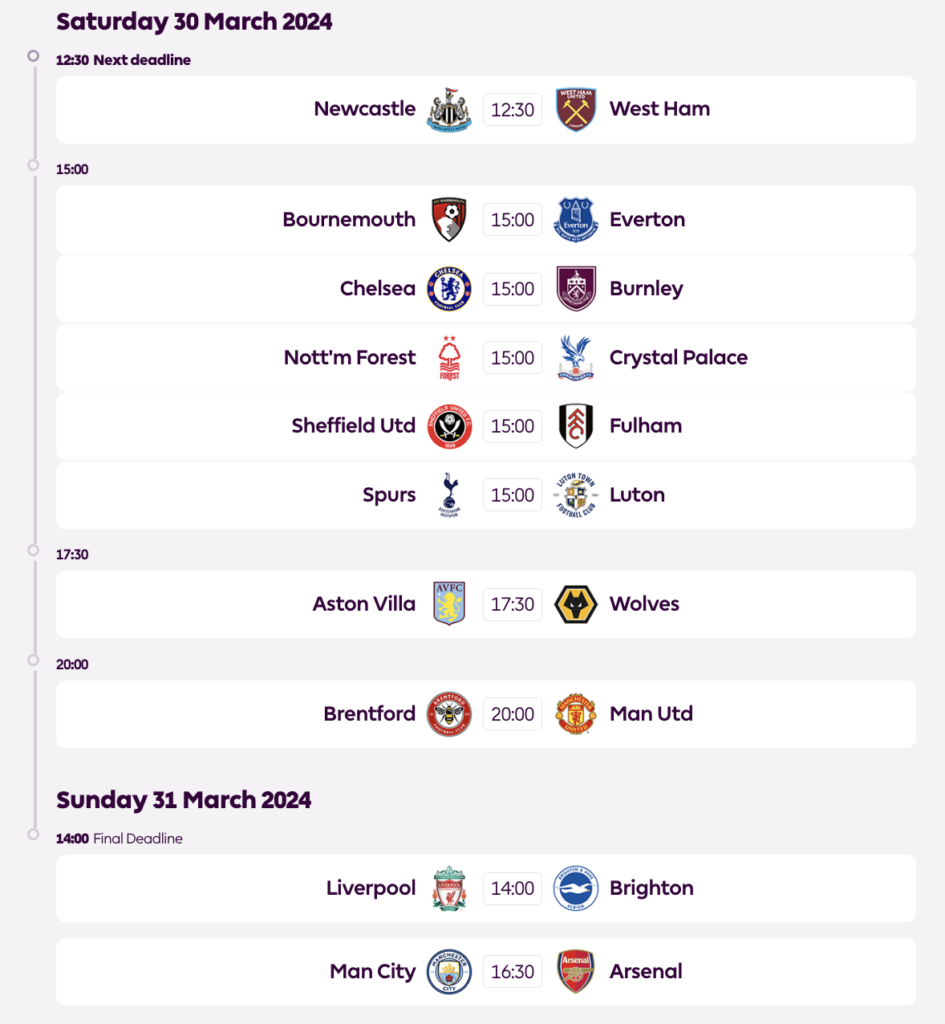 - If the last two games are kicking off at different times then you cannot rely on the team news of the last kick-off as the final deadline would have been passed already.
