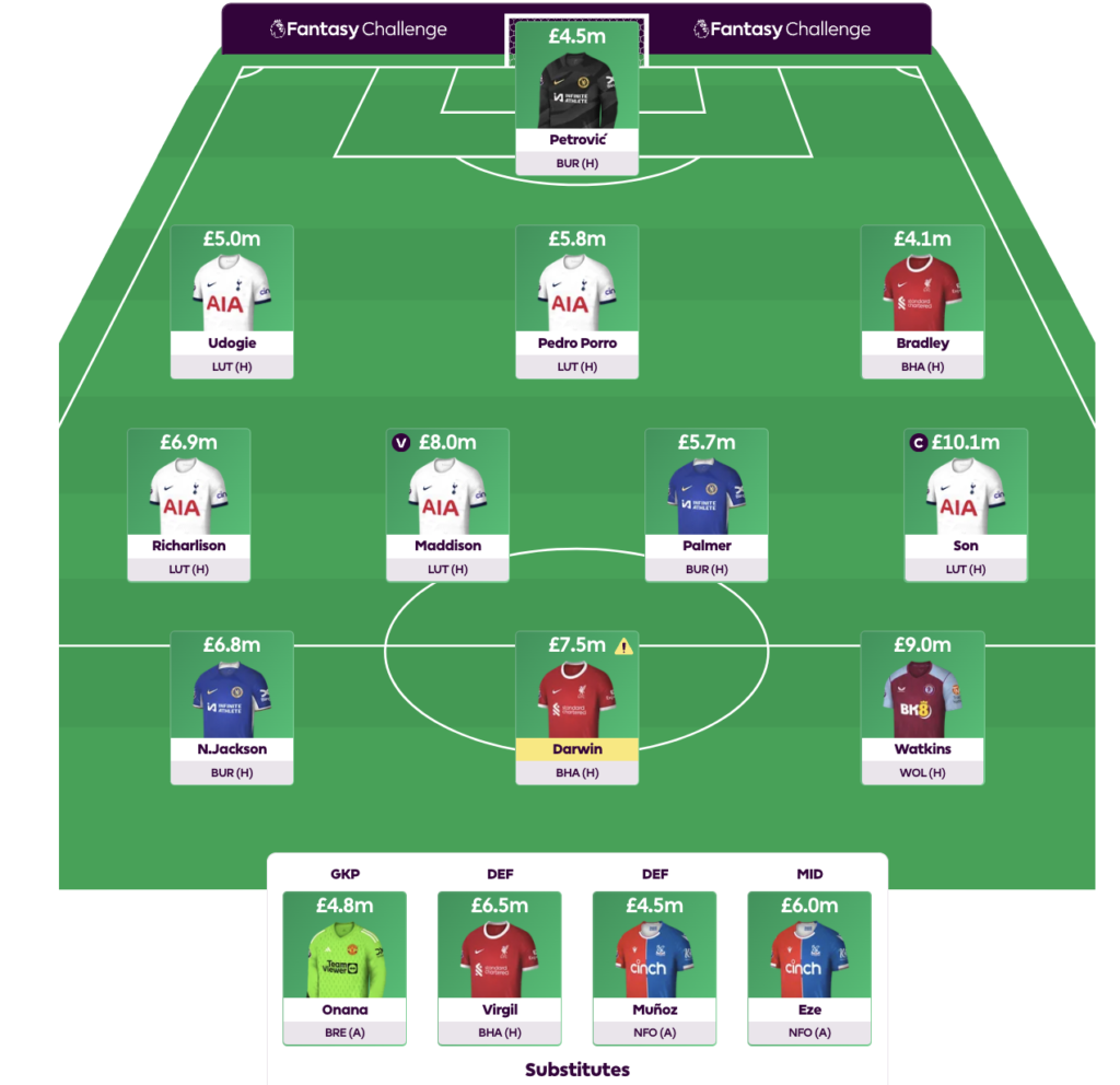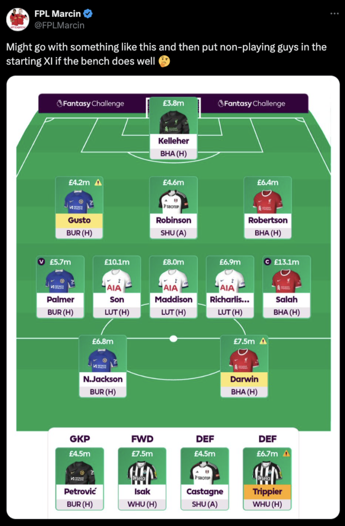 If your benched players don’t haul then you can remove the injured/suspended players with players who have not yet played like Salah, Darwin, Saka etc.