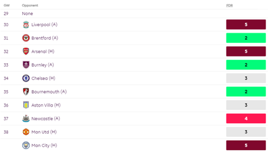 However, a closer look at the fixtures will reveal how things might start looking tough for Groร. Brightonโs rank in terms of FDR