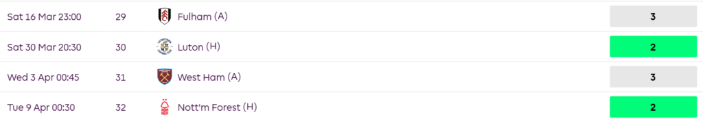 FPL GW29 Fixtures