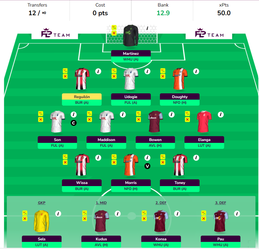 - Note: Elanga is a slight xMins risk, if you’re not confident you can go for Kudus, Douglas Luiz, or even Brennan Johnson