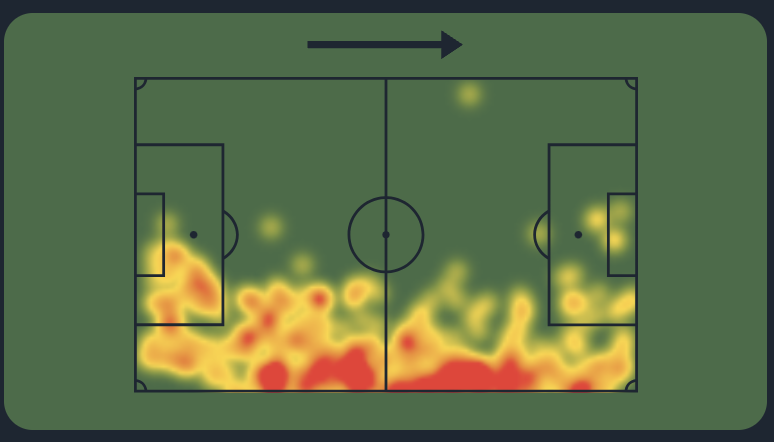 Daniel Munoz, Crystal Palace’s January signing has settled in nicely for the Eagles and has been a standout performer. Crystal Palace play in an attacking 3-4-3 formation under new manager Oliver Glasner. Munoz operates as the RWB and occupies attacking positions on the pitch which can be seen from his heatmap below.