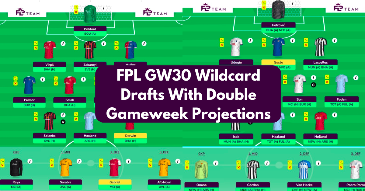 Double Gameweek 34 announcement and more info available on DGW35/36 and DGW37 has made FPL GW30 Wildcard an interesting option. In this article, Let us take a look at the Upcoming Double Gameweeks, Players to Target in GW30 Wildcard, and Best FPL GW30 Wildcard Drafts with Projections for upcoming Double Gameweeks.