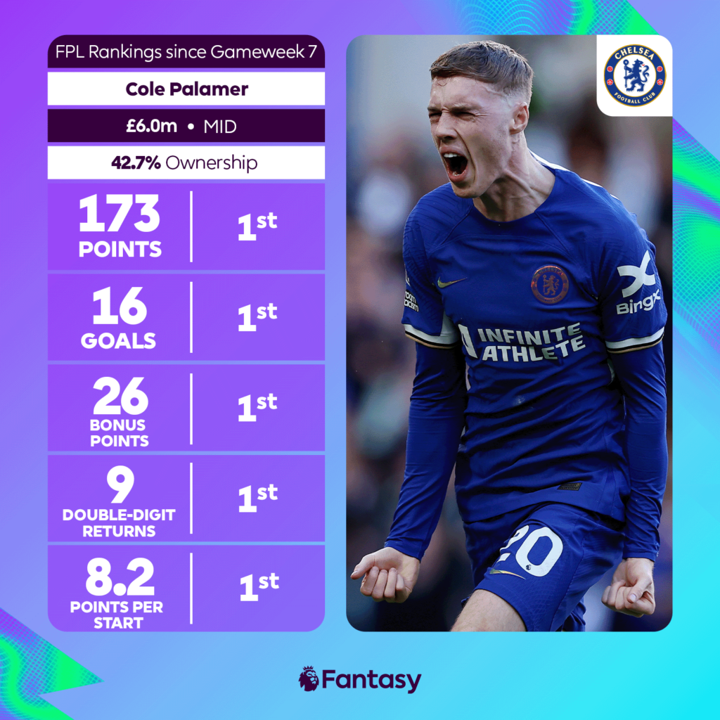 Cole Palmer has become a no-brainer pick these days considering the form he is in. He is still fresh from his incredible hattrick vs Man United in midweek. Palmer has 25 goal involvements(16 goals, 9 assists) from 22 matches since he became a starter for Chelsea in GW7.