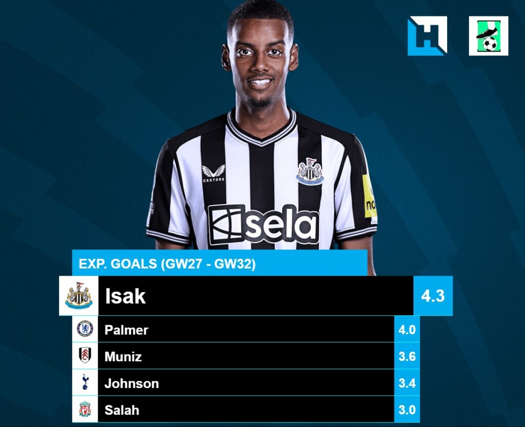 Isak has been in scintillating form off late with 5 goals, 1 assist from his last 5 matches fetching 39 points in the process. Only Palmer(5.5) has a better xGI than Isak(4.8) during this time. In fact, Isak leads the xG charts in Premier Leage during this time as seen below. Isak and Newcastle will be up against a Spurs side who have kept only 2 clean sheets since GW10.