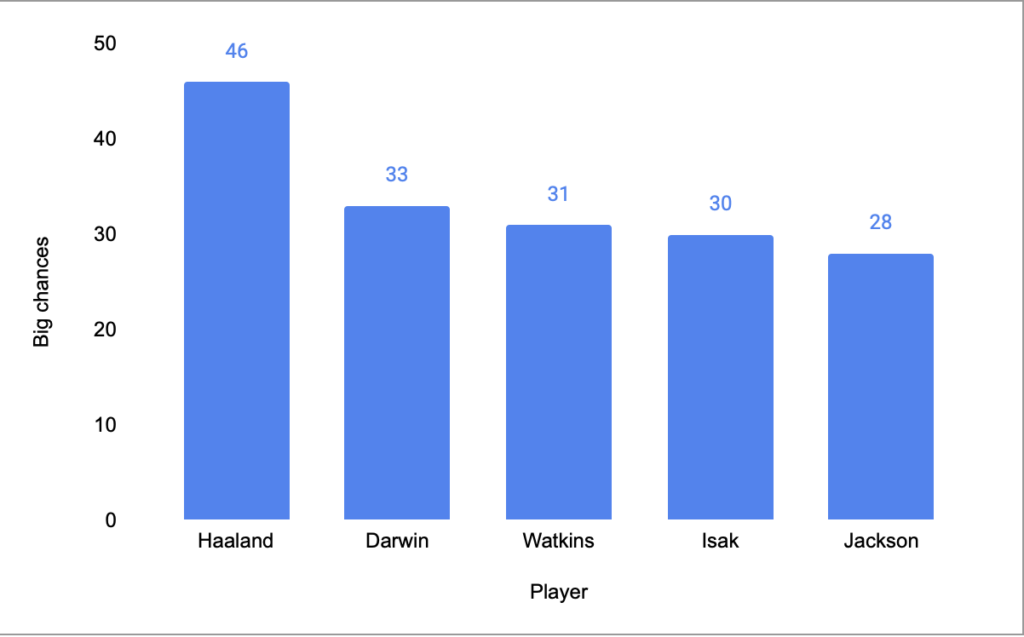 Nico Jackson is fifth on the list for big chances this season. If the last two matches are anything to go by, against the two best sides in the division in Man City and Arsenal, the Senegalese international is going to keep getting those chances.