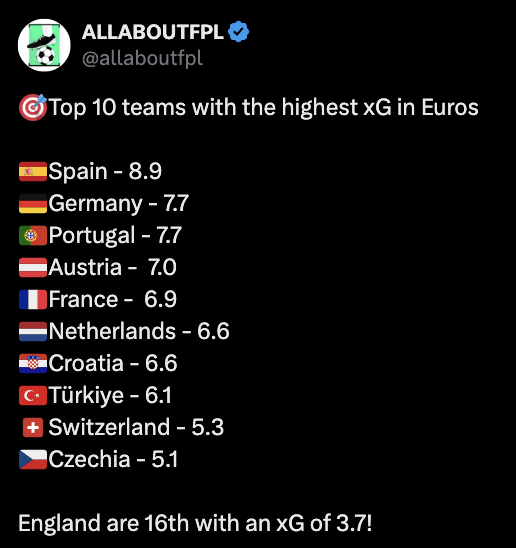 France’s defense is up there with Spain’s for the best in the tournament, with both teams only conceding 0.3 goals per match so far. In fact, Les Bleus actually come out on top when looking at expected data, having conceded only 2.6xGA over the course of EURO 2024, the lowest at the competition. Thus, even against Portugal in MD5, their defenders should be targeted. While Hernandez and Saliba are the most popular picks, Upemacano has been slowly accruing a decent points total, and playing every single minute for France in this tournament.