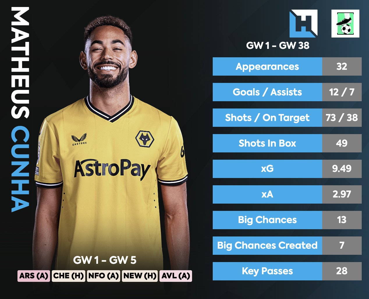 Cons: Horrible fixtures till Gameweek 8 where Wolves play 6 of last Season’s Top 8 Teams. (only Man United and Spurs are not part of that run). Best to come back to Cunha after Gameweek 8.