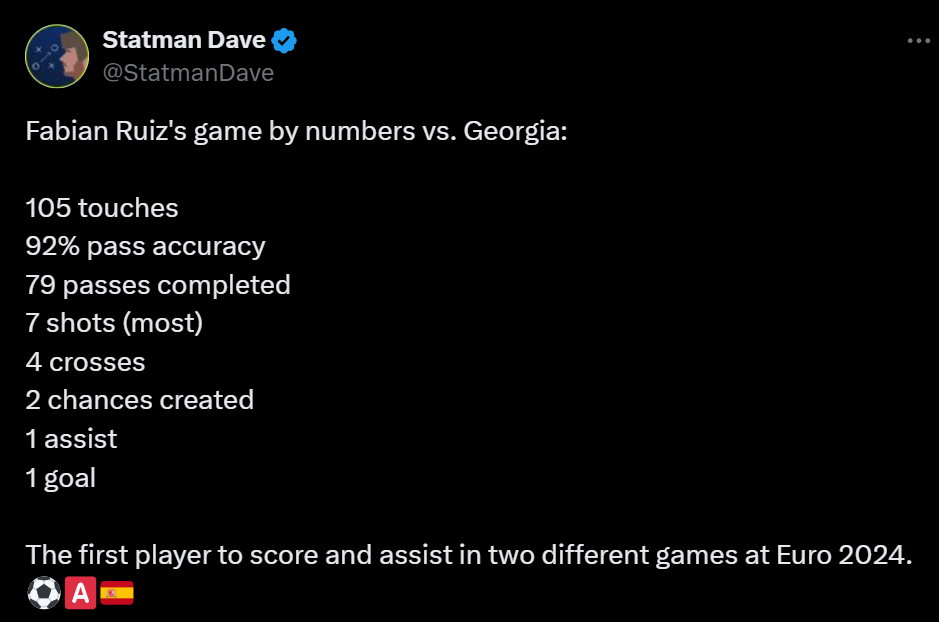 With two goals and two assists in his last four games, Fabian Ruiz has been the creative engine for Spain in UEFA Euro 2024. He boasts an impressive 93% passing accuracy, 3.8 shots per 90 and has created 3 big chances for La Roja. The Spanish midfielder has accumulated 29 points for Euro Fantasy managers. Set to take on host Germany, Fabian Ruiz is the top midfield player to target for your wildcard team.