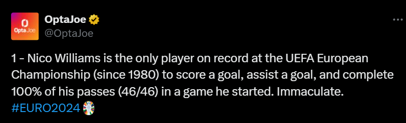 With one goal, one assist, and 11 chances created for Spain, Nico Williams has been a standout performer this Euro 2024. Known for his innate dribbling and frequent touches in the opposition box, Williams is frequently in a prime position to score more often than his Spanish teammates.