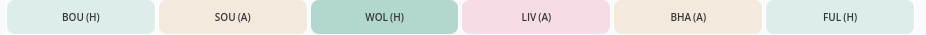 However, I do think that Wolves’ opening fixtures mean that their assets should be placed on your watchlist to see if they are worth taking a punt on for better runs of games – Hub places them last in the fixture difficulty analyser. They did keep just 5 clean sheets and scored 50 goals last season, and could potentially see themselves in a relegation battle. I really like Ait-Nouri, but would definitely not put him in my starting team.