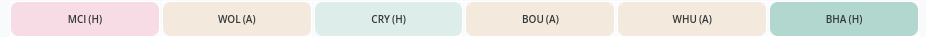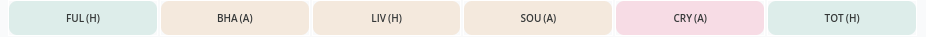Brighton have a below average fixture difficulty rating, with some tough games against Man United, Arsenal, and Chelsea. Despite that, Brighton players could bring in great points hauls in games such as Ipswich and Forest at home, and now that we can accumulate 5 free transfers, there is definitely the potential to take a punt on someone like Minteh for these matches. At ยฃ5.5m, he is one of my favourite differential options this season.
