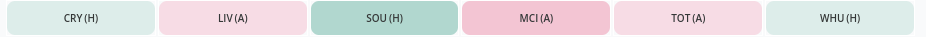 An expected points tally of 27.8 in the first 6 games is great for his price range, especially considering there will be some more difficult games against Newcastle, Arsenal, and Man United.