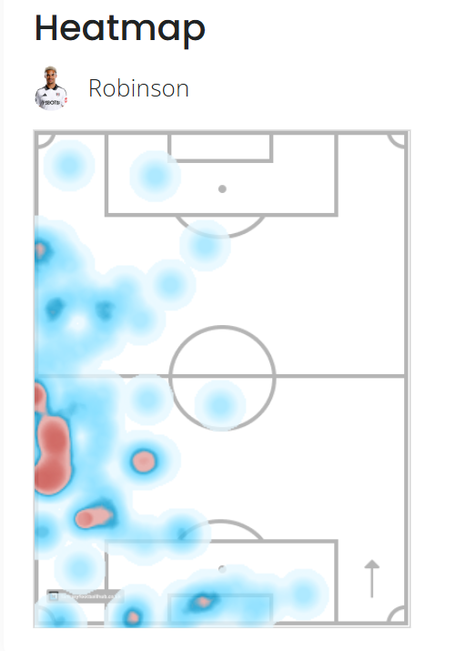 Robinson Heat Map in GW1 vs Manchester United- Expect a more advanced Robinson vs Leicester City.