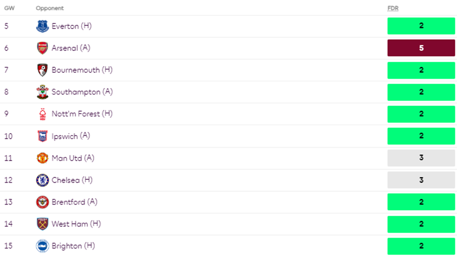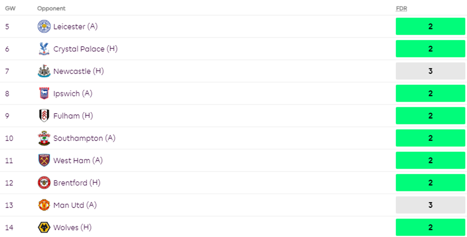 Looking ahead, Arsenal’s fixtures beyond Gameweek 5 are highly favourable.
