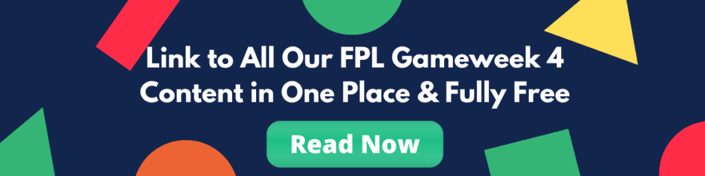 Link to all our FPL GW4 blogs including buy, hold, sell analysis, differentials, captaincy metrics, transfer targets, and more. Completely free to access as well!