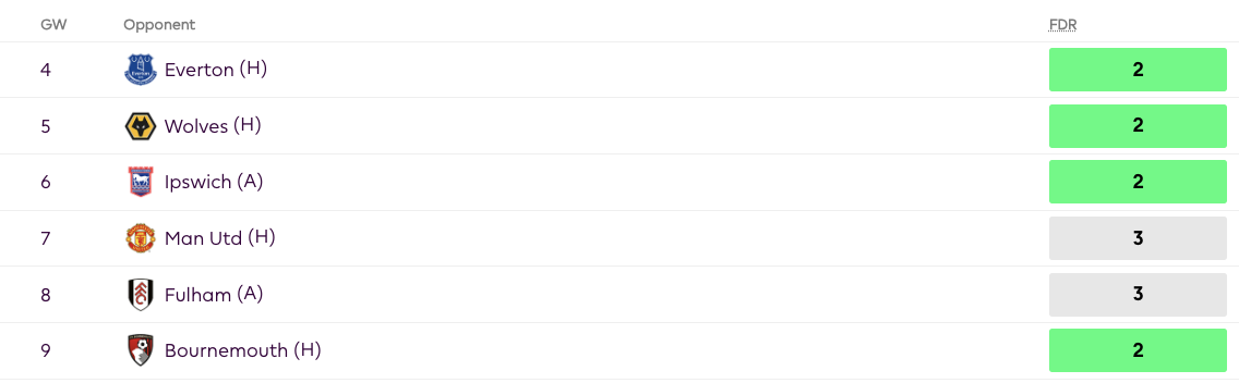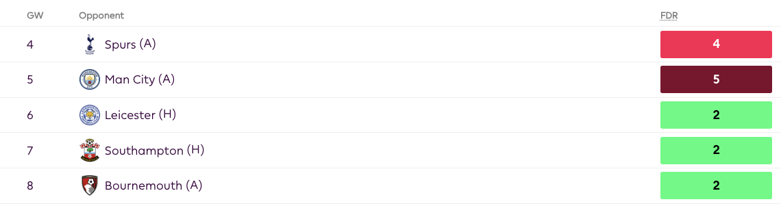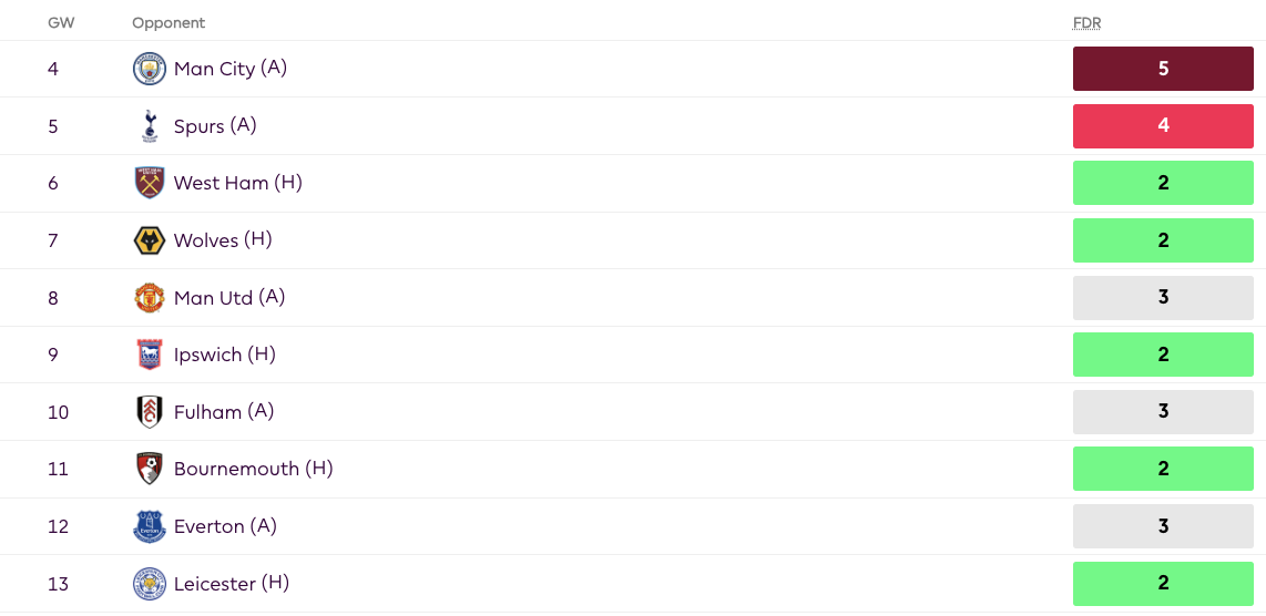 - Palmer is a good pick long-term but can also be used short-term as a placeholder to cover for Saka in GW4 and GW5. Saka has tough away games in GW4 and GW5 but after that has good fixtures from GW6.