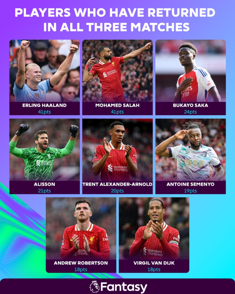 - Semenyo is also there in this draft returning in all three 3 games so far. In fact, only 8 players have returned in all the 3 matches so far.