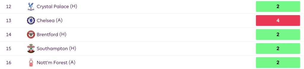 These 5 fixtures offer a really good attacking threat and potential to rack up some points. He could also be a differential captaincy shout in GW14 against Brentford as well in GW15 against S’oton. The Chelsea fixture is also not that off-putting considering their defensive form as of now.