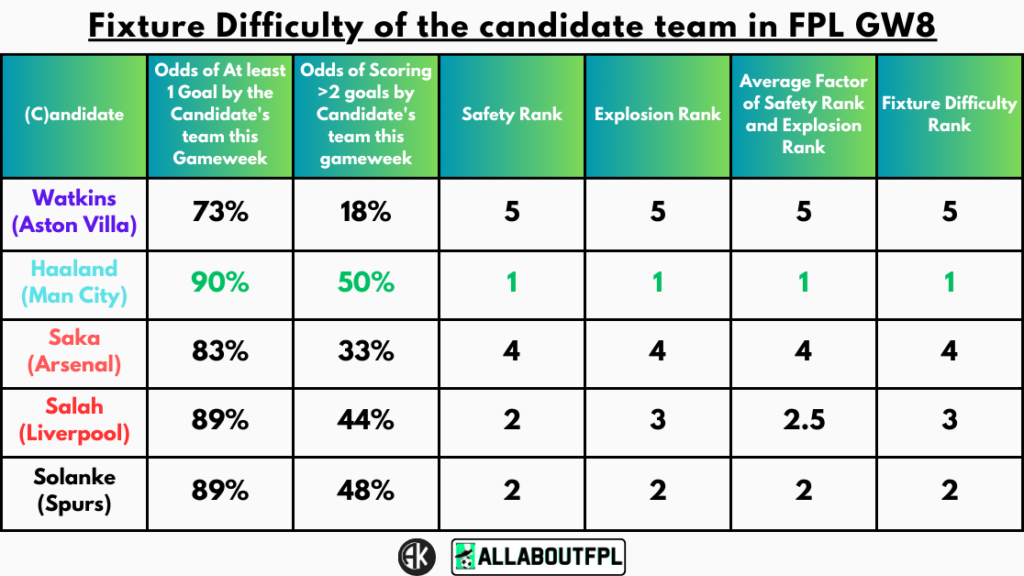 Conclusion – Final Rank from our FPL Gameweek 8 Captaincy metrics