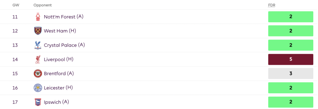 Moving forward, new manager Amorim could also deploy a wing-back system at United, making Dalot a much better FPL asset. With great fixtures, good attacking upside, and being the most nailed defender in this United side, managers looking for a defensive transfer should look at Dalot this GW.