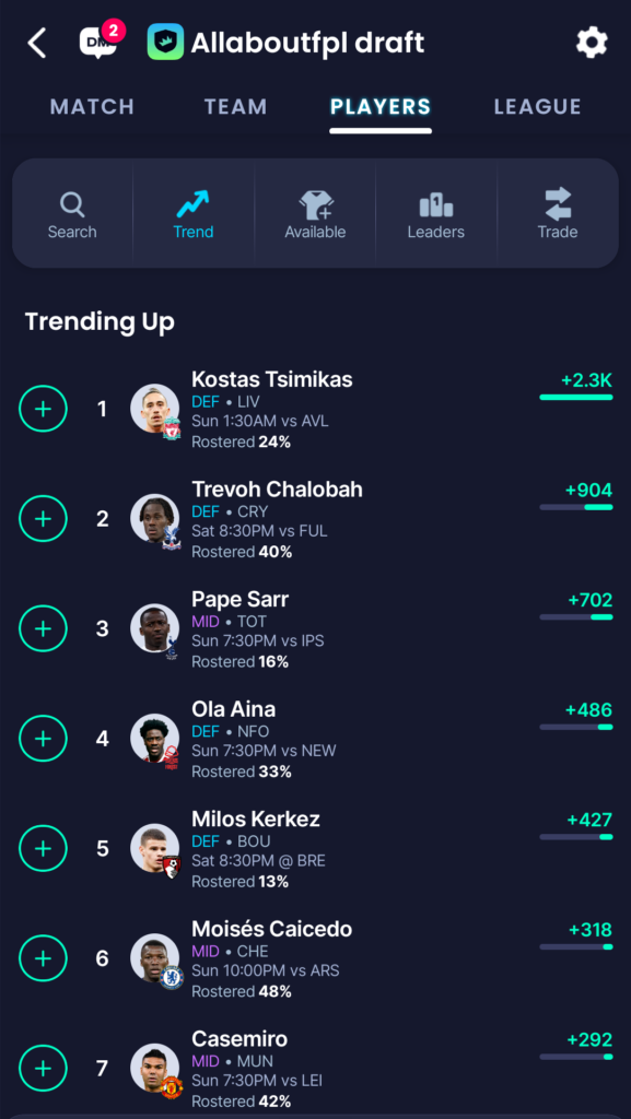 Trending Players on Sleeper Draft Fantasy Ahead of GW11