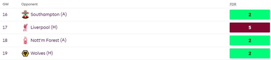 Even beyond GW16, Maddison has a favourable run of fixtures.