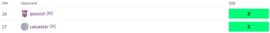 Adding to his appeal, Isak benefits from a favourable run of fixtures in the short term, which further enhances his potential to deliver consistent returns. With Newcastle in strong form and Isak playing a central role in their attack, he is perfectly positioned to capitalize on these upcoming matches especially with Wilson out for a considerable period.