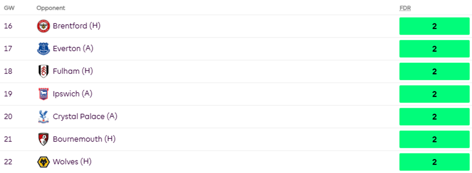 That said, it’s important to note that Cunha’s short-term fixtures remain favorable, offering him a prime opportunity to bounce back and rediscover his form. With promising matchups on the horizon, he still has the potential to deliver value and reward patient managers.