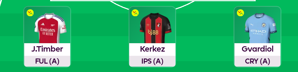Timber (5.6m), Kerkez(4.6m) and Gvardiol (6.2m) make up our defensive trio for GW15.
