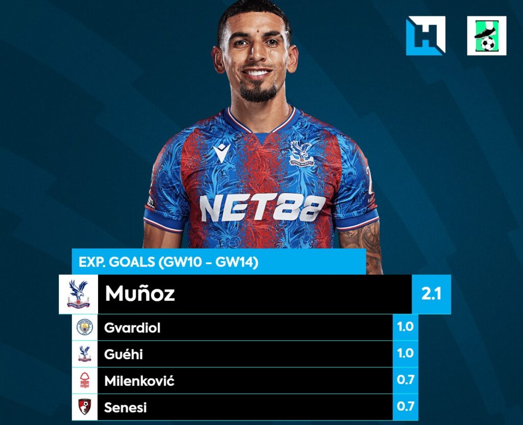 Munoz has averaged almost two shots per match (with a solid xG value per shot) in recent weeks and has delivered at least one key pass in each fixture. He has missed a big chance or two in this time which shows he likely could have scored even more points.