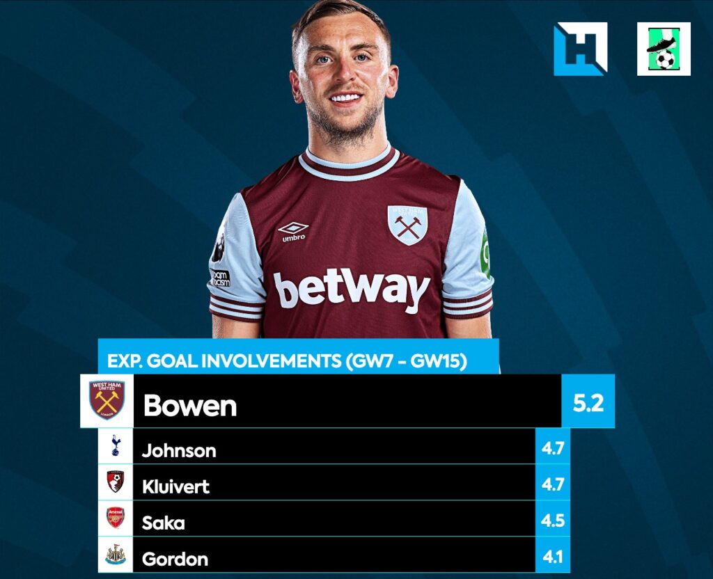 Bowen is only behind Salah and Palmer for xGI among Midfielders since GW7.